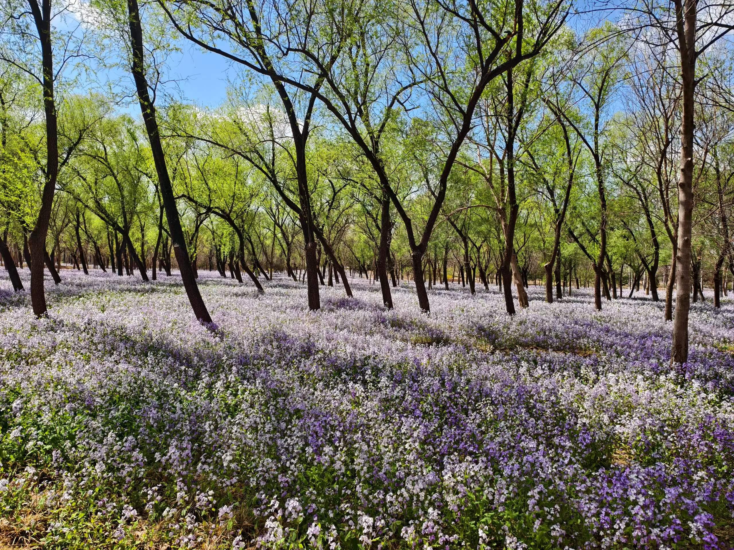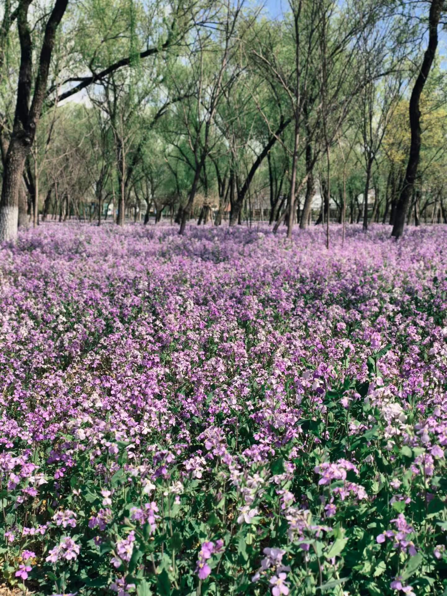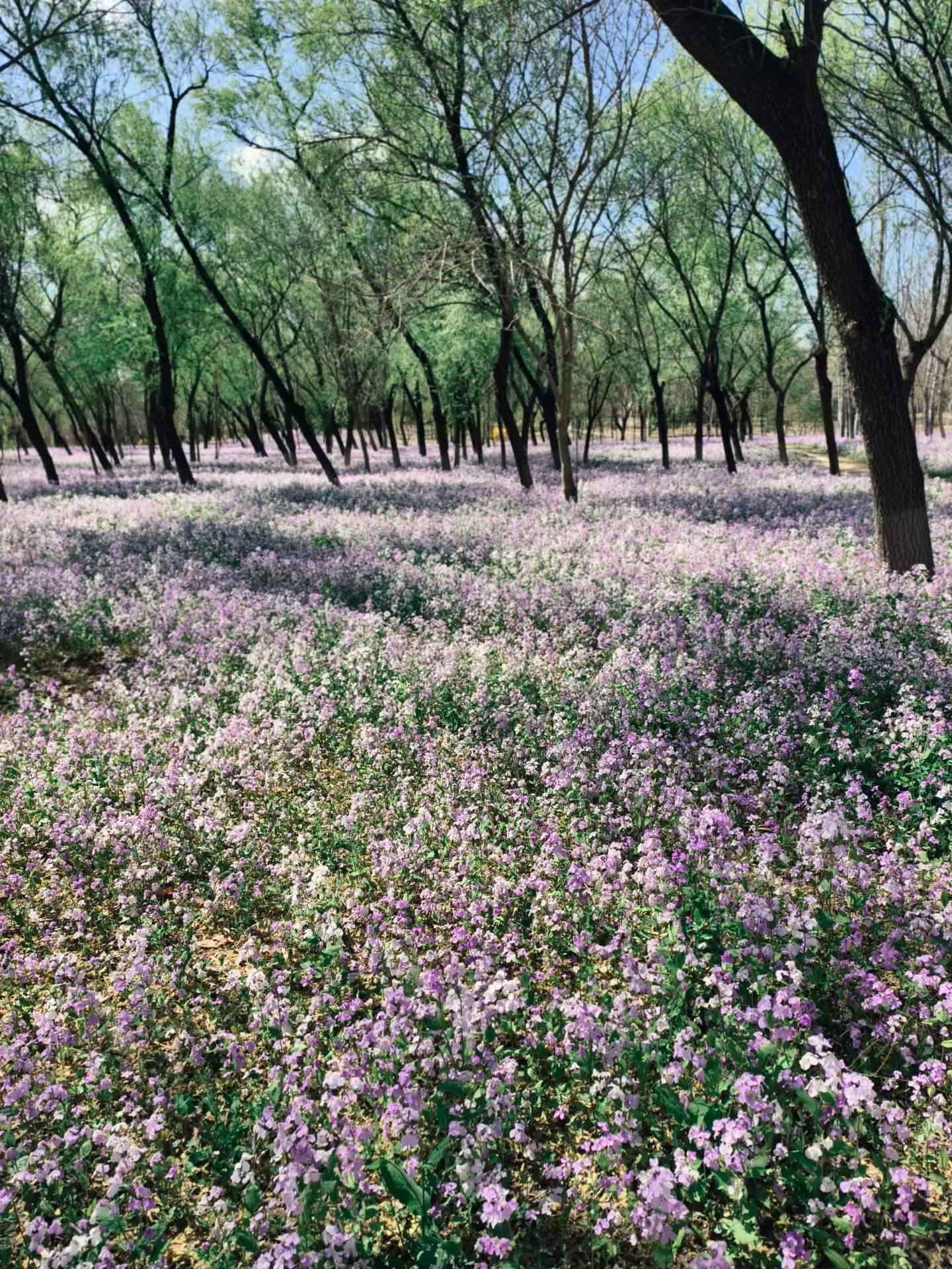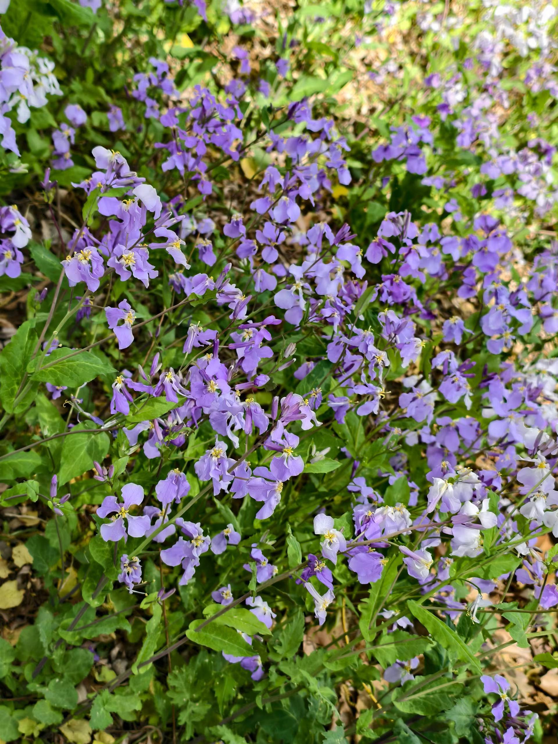 二月兰开成一片花海,阳光下像梦境一样