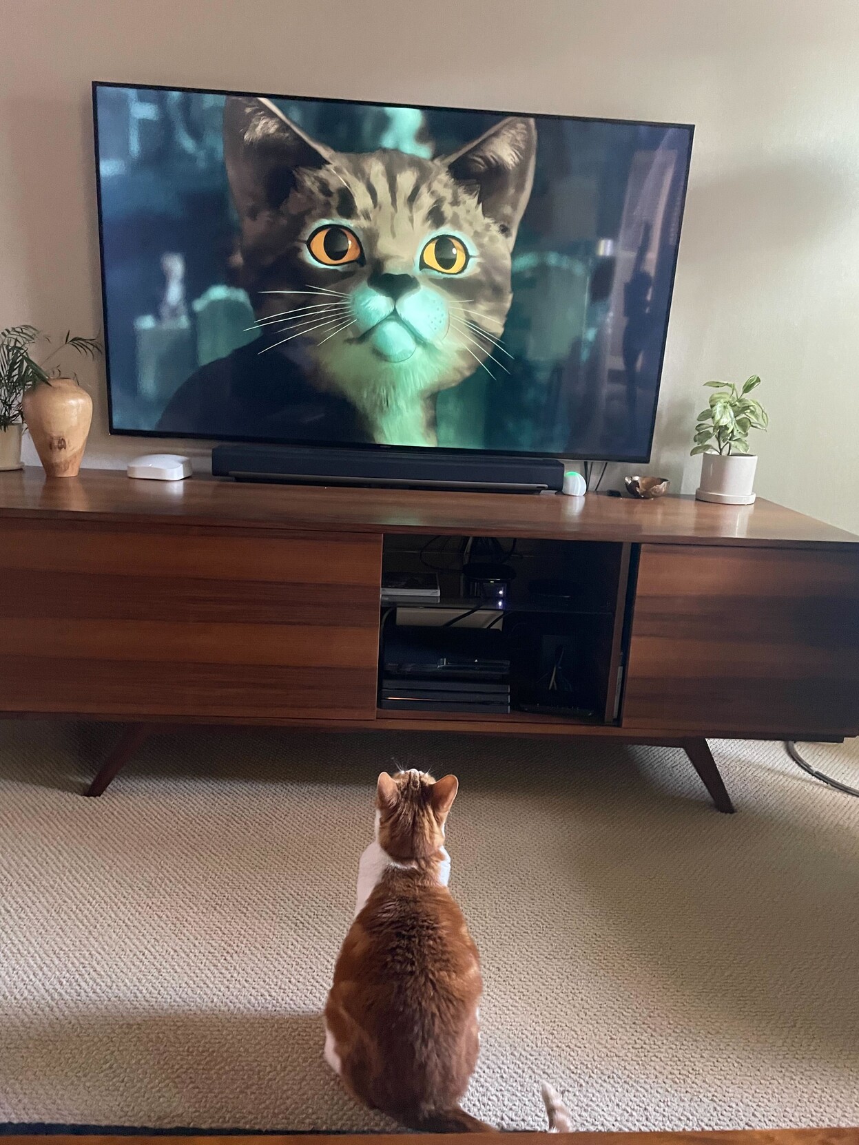Anyone else's cat REALLY into the new Sandman episode? Because Jean Grey was CAPTIVATED. #Caturday