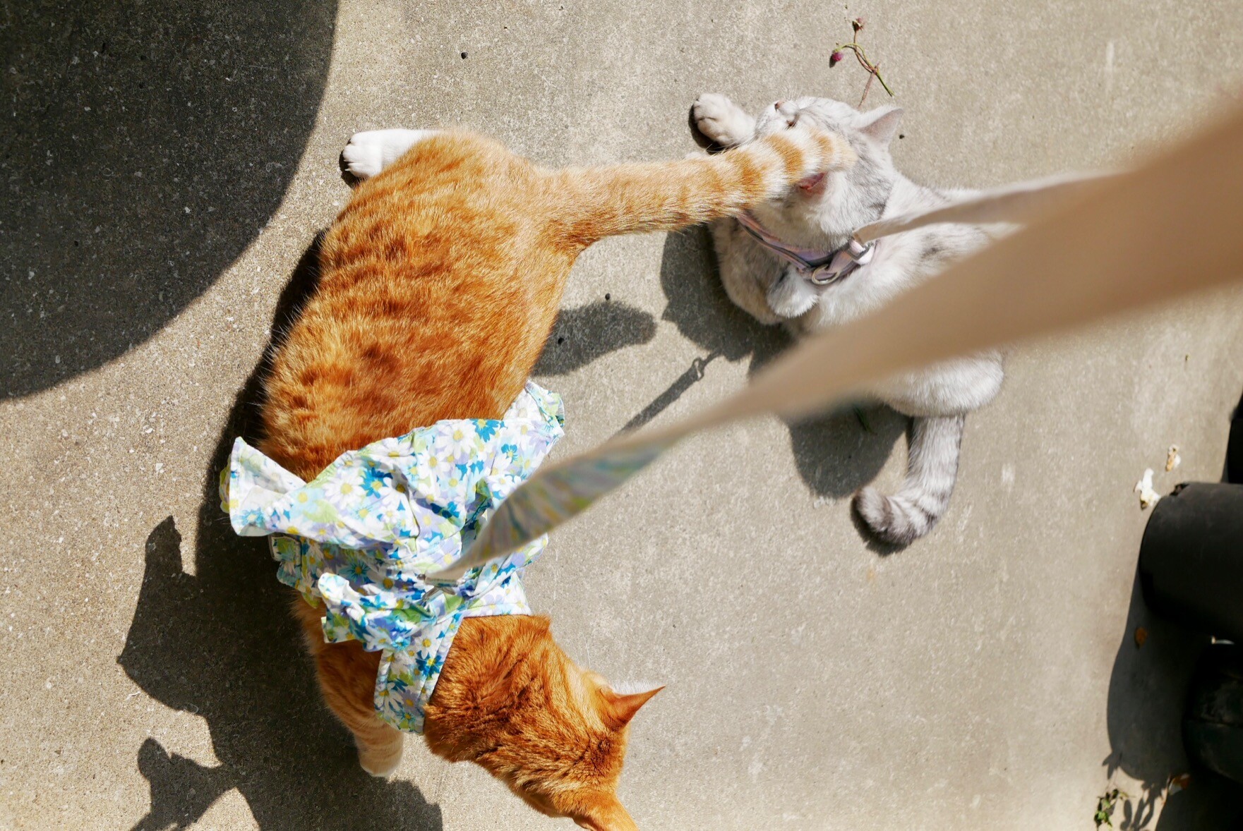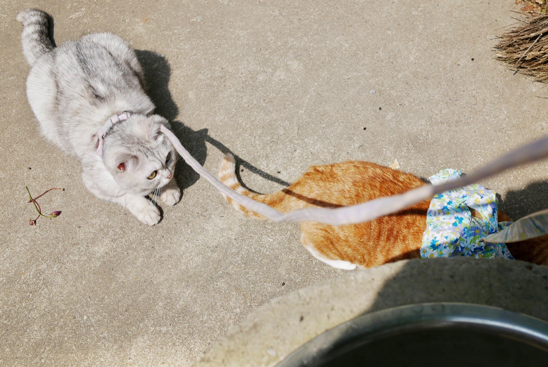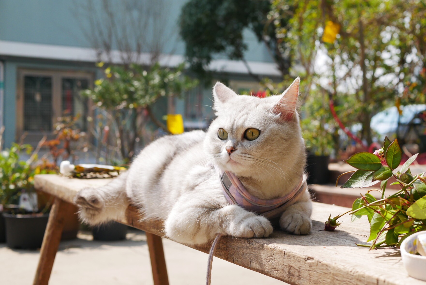 同时遛两猫难度太大了,平时布丁单猫模式一出门就是全程蹲地,结果今天有妹妹在居然敢到处探索了,反倒是飘妹还能在板凳上坐定。最后就是飘妹陪着一起在板凳晒了好一会儿太阳,布丁只能在屋里窗台看着我们